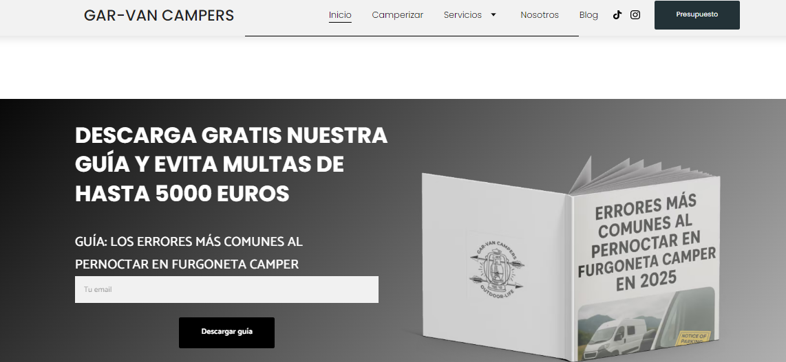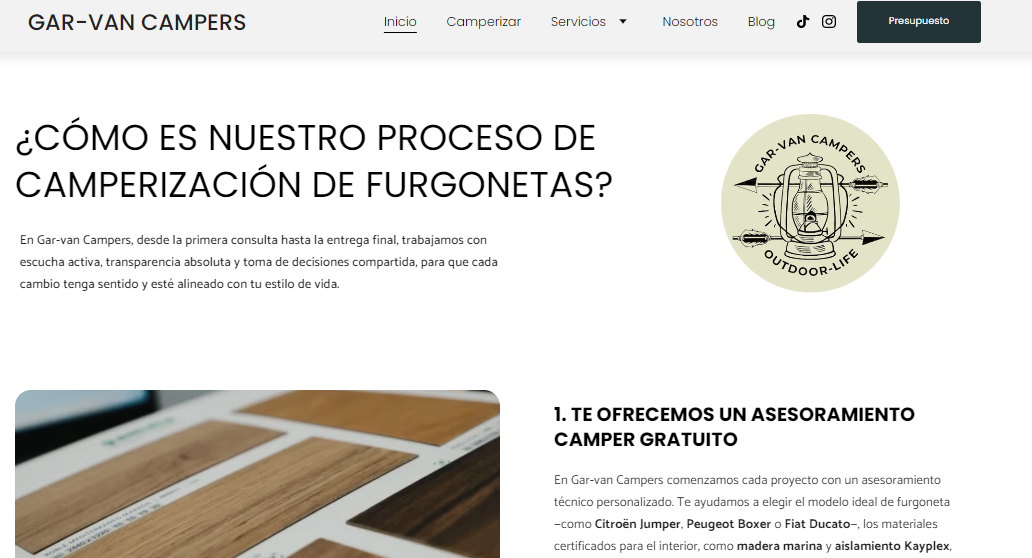 Se desarrolló una página web completa desde cero dentro del constructor Hostinger Website Builder, respetando las herramientas que el cliente deseaba mantener. Se diseñó una página de inicio optimizada para la keyword "camperización de furgonetas", con enfoque local, y se creó una sección de servicios donde cada servicio tiene su propia página, mejorando así el SEO y la experiencia del usuario. Además, se redactó una página “Sobre nosotros” con un enfoque de marca emocional y storytelling, se activó un blog con contenidos pensados para el posicionamiento y se implementó una guía descargable como lead magnet para captar correos de potenciales clientes. También se trabajó el feed de Google Shopping, se categorizaron productos, se configuró todo el sistema de fichas y se potenció la imagen de marca en toda la web.