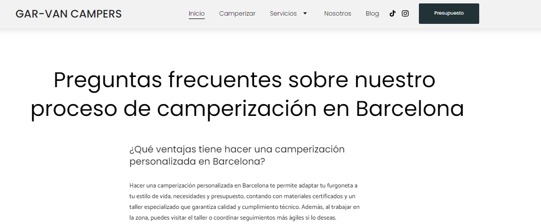 Desde el lanzamiento de la web, la evolución ha seguido una línea ascendente constante, posicionando en primeras posiciones de Google para palabras clave relevantes del sector, como camperización de furgonetas y términos geolocalizados. Además, la empresa ha empezado a aparecer como negocio recomendado en buscadores de IA, aumentando su autoridad y visibilidad online. También se ha trabajado de forma estratégica la optimización de la ficha de Google, mejorando su presencia en búsquedas locales, atrayendo más clics y solicitudes de contacto. Todo esto ha permitido fortalecer la marca y captar clientes más cualificados con interés real en sus servicios.
